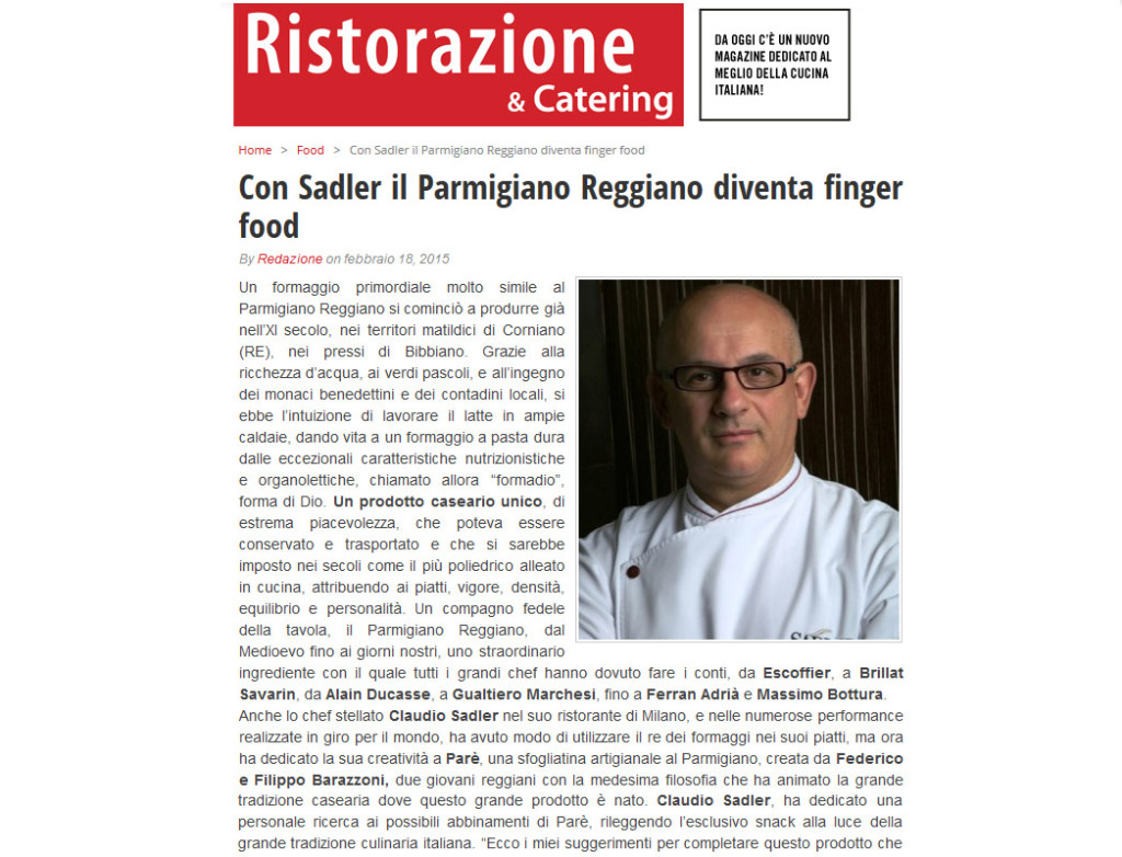 Parè, finger-food con Chef Claudio Sadler 18 Febbraio 2015/in news-eventi-it /da parsuperadminSadler e PARÈ, il Parmigiano Reggiano diventa finger-food. Ecco il link all’articolo di Ristorazione & Catering: http://www.ristorazionecatering.it/mercato-prodotti-alimentari/con-sadler-il-parmigiano-reggiano-diventa-finger-food/ https://xn--par-8la.it/wp-content/uploads/2015/05/news-31.jpg 800 1047 parsuperadmin http://www.parè.it/wp-content/uploads/2014/04/logo-300x92.png parsuperadmin2015-02-18 17:01:352018-07-17 11:39:19Parè, finger-food con Chef Claudio Sadler